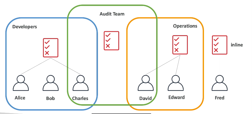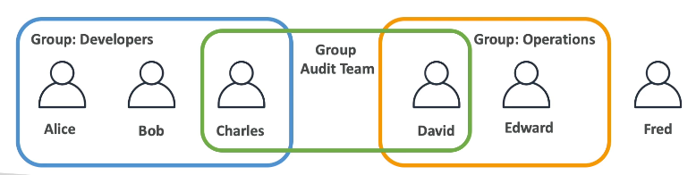 - Users : 하나의 사용자는 조직 내의 한 사람에 해당한다. 사용자들을 그룹으로 묶을 수 있다.