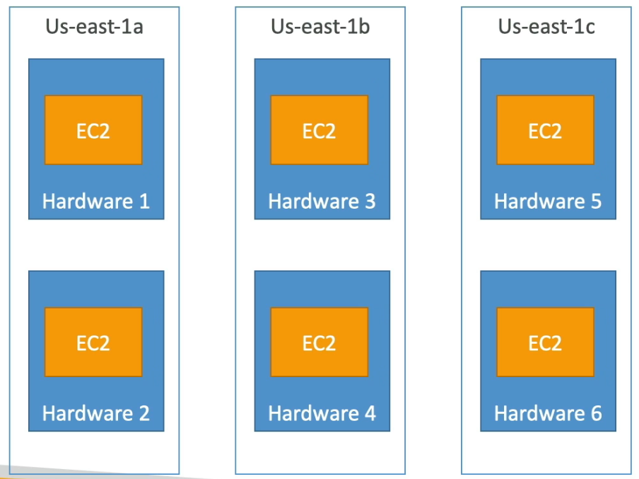 - 모든 EC2 인스턴스가 다른 하드웨어에 위치함.