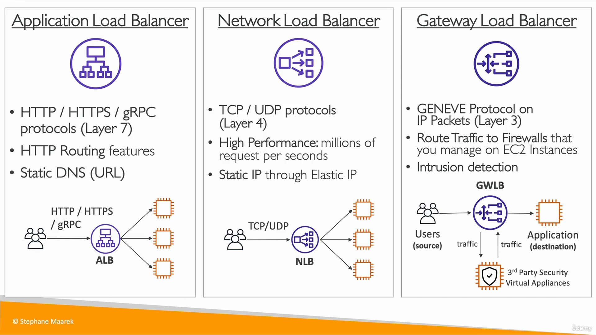 - 네트워크 로드 밸런서 (ultra-high performance, allows for TCP) - Layer 4