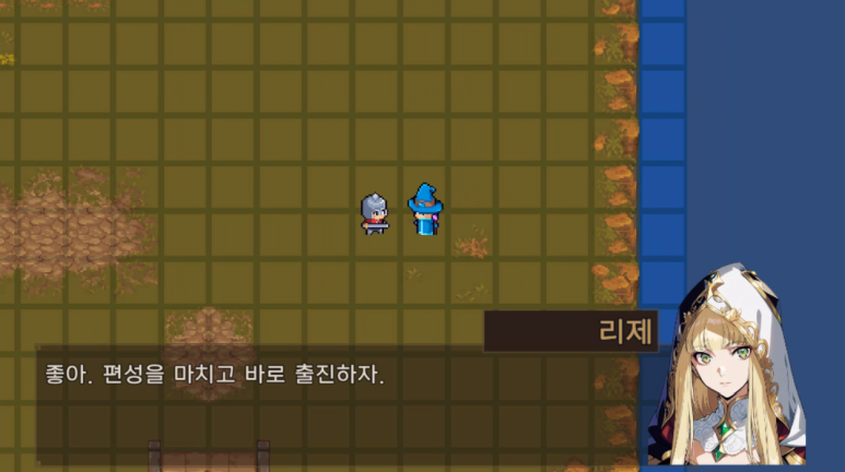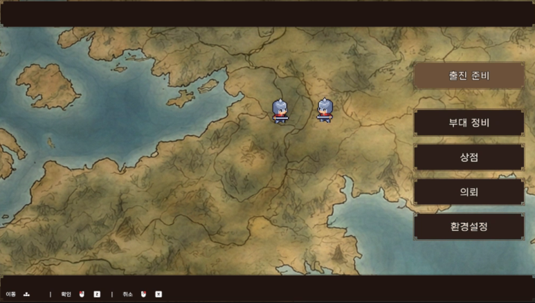 출진 전 정비 씬이다. 이걸 필드 탐색형으로 갈지, 메뉴 중심으로 갈지는 아직 고민 중이다.